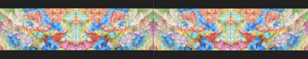 横長の構図には、都市の空を舞う龍が潜んでいる。それぞれが輝きを放ち、都市の中で力強く共鳴し合う存在として描かれている。そして、柱の作品には、まだ幼い龍の姿が浮かび上がる。それは、都市の未来を担う存在であり、鑑賞者自身がその“子龍”として都市の輝きの中心に立つことを意味している。